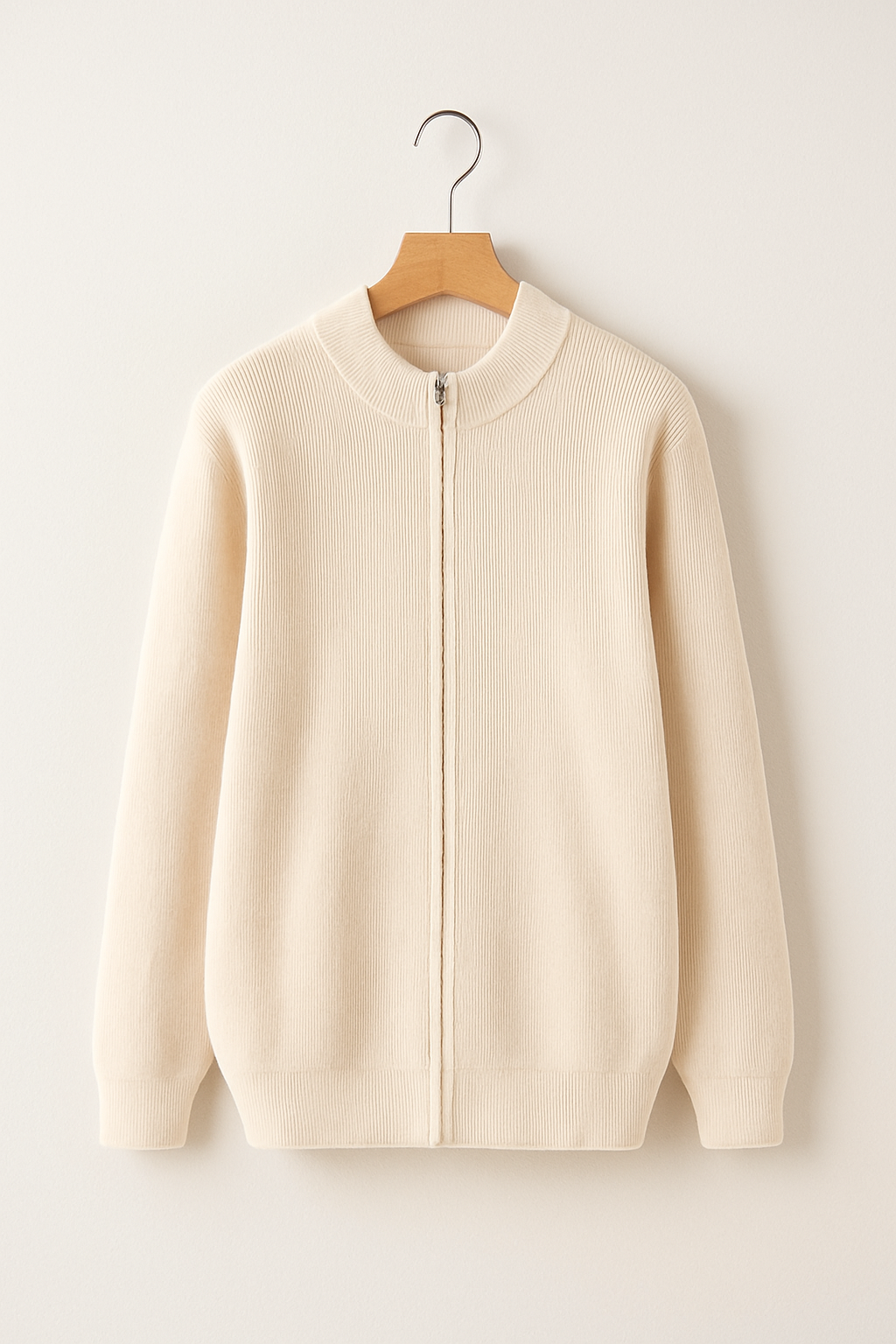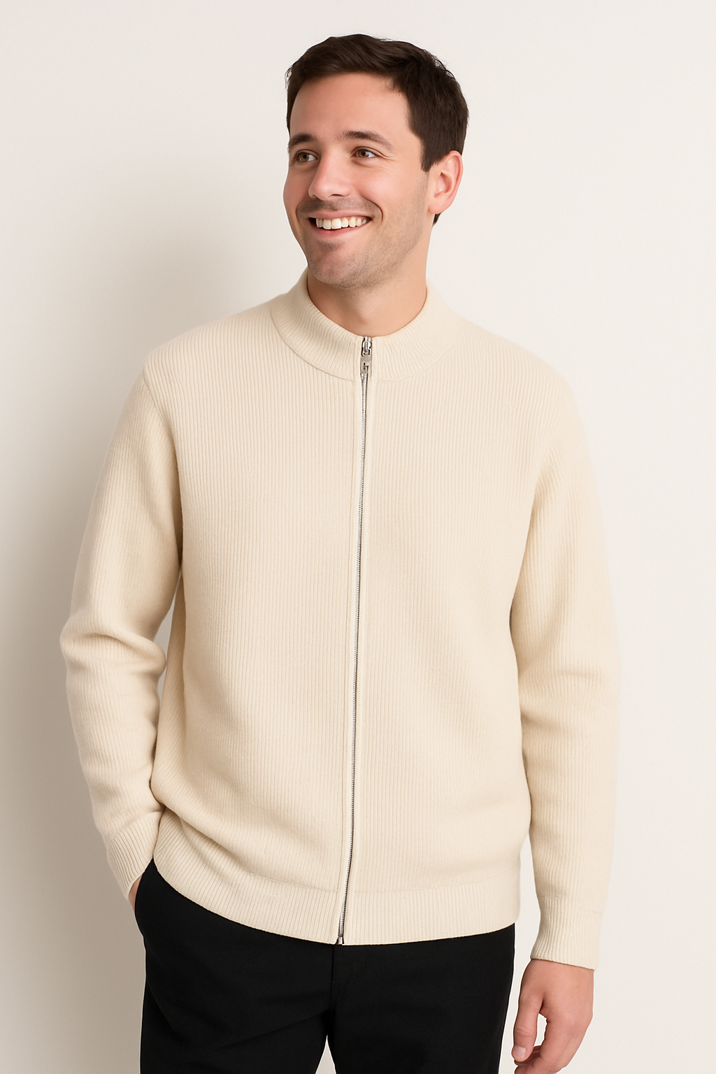 Der William Cardigan mit Reißverschluss besticht durch sein schlichtes Design und angenehme Wärme