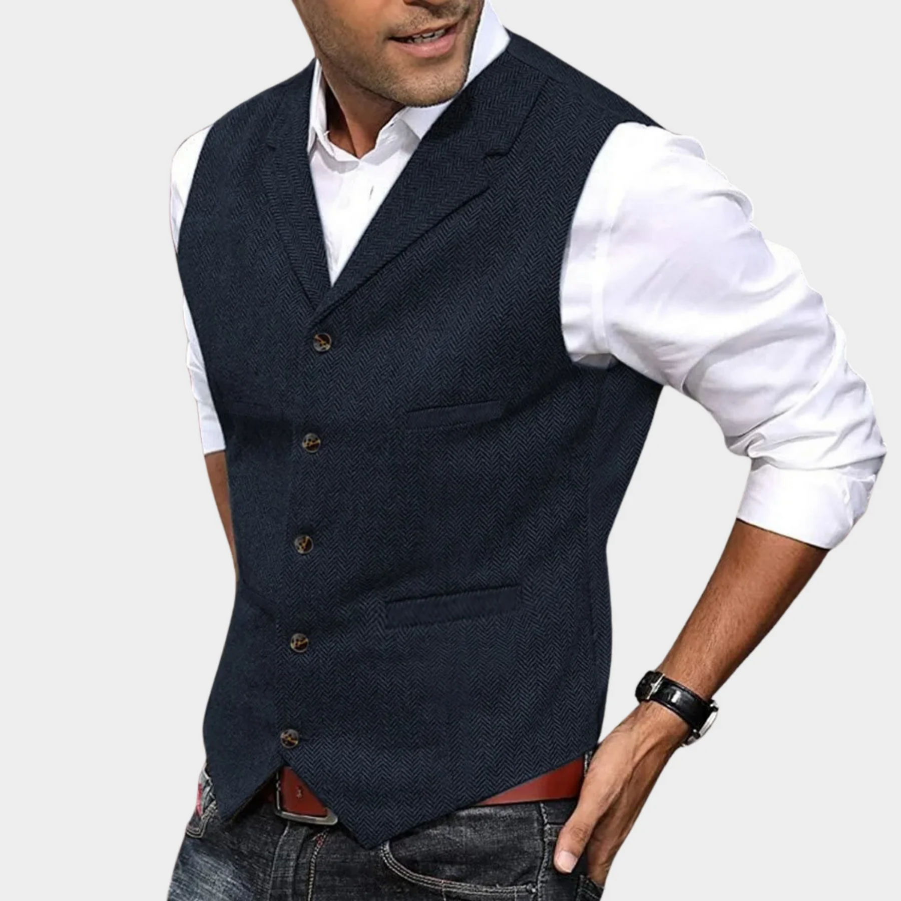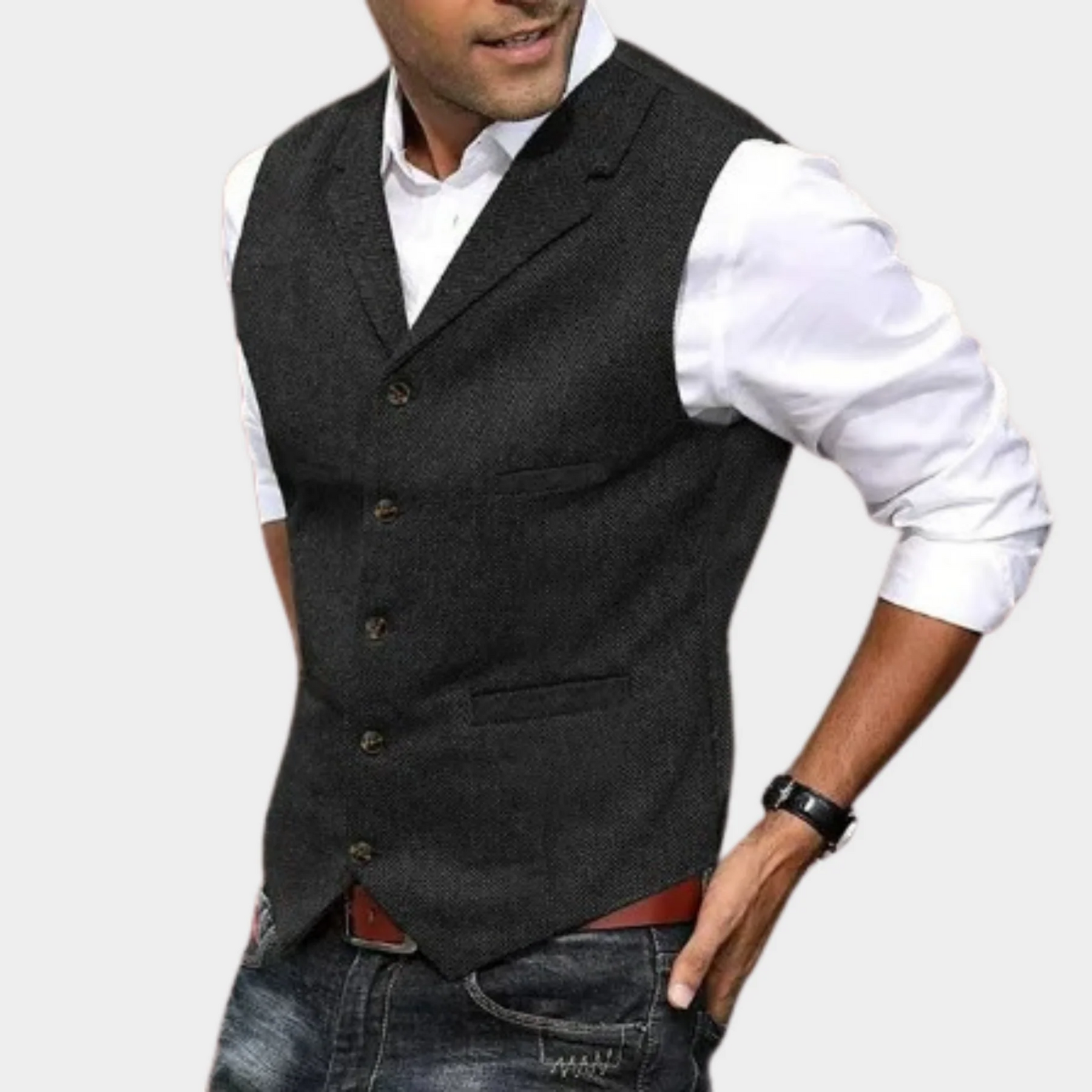 Kämpfen Sie mit der Suche nach dem einen Teil, das Ihr Outfit sofort aufwertet? Die Yohan Ärmellose Weste ist Ihre Lösung für einen scharfen, maskulinen Stil, ohne dass Sie sich darum kümmern müssen. Egal, ob Sie sich für lässige Arbeitstage, spontane Abendessen oder Wochenendtreffen kleiden, diese elegante schwarze Weste verleiht Ihnen Struktur, Selbstvertrauen und zeitlosen Charme - so fallen Sie mühelos auf, jedes Mal.
