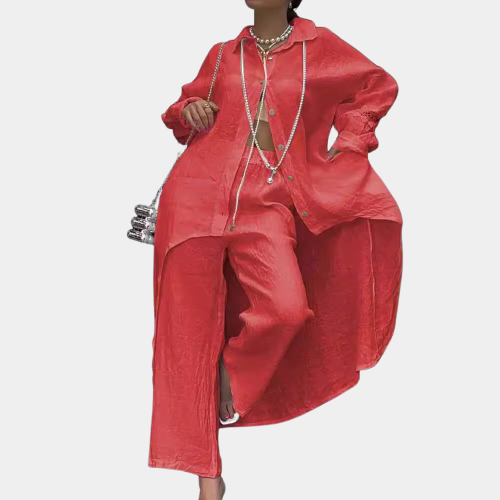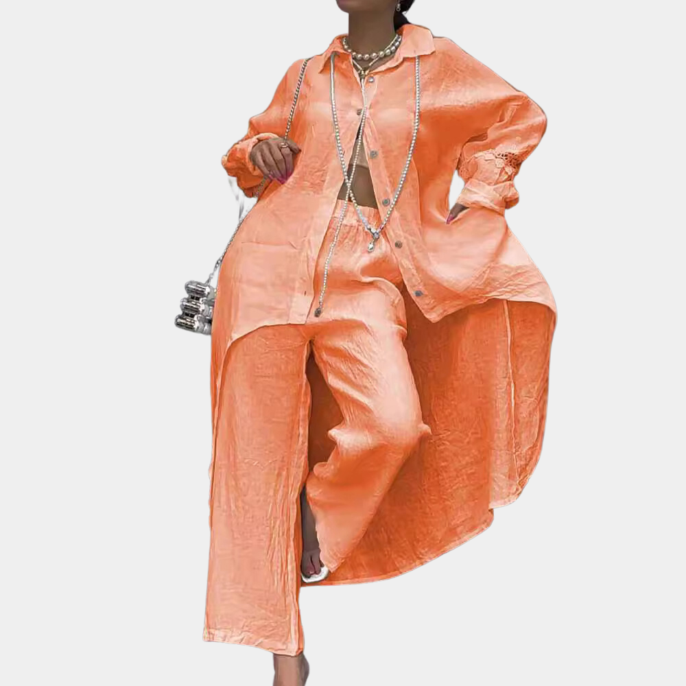Genießen Sie ein luxuriöses Gefühl mit dem Zina Trendy und eleganten zweiteiligen Set für Frauen, perfekt für heiße Tage. Dieser Zweiteiler aus luftigem Material sorgt dafür, dass Sie sich immer frisch und wohl fühlen.